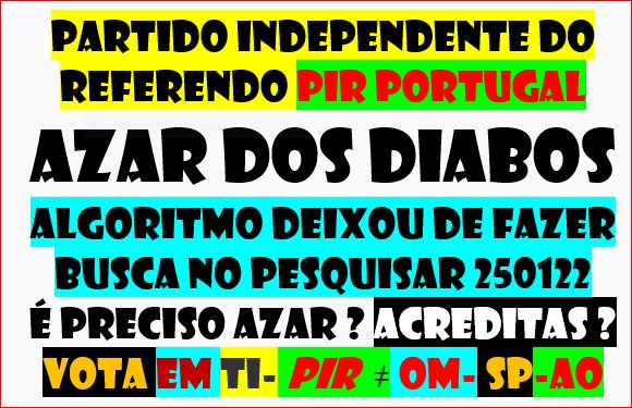 PORTUGAL PIR PARTIDO INDEPENDENTE DO REFERENDO ÚNICO QUE SATISFAZ TODOS OS REQUISITOS DEMOCRÁTICOS E LEGAIS EXIGIDOS NA CRP A LEI DAS LEIS A QUE TODAS AS OUTRAS SE SUBMETEM SOB PENA DE VIOLAÇÃO QUE DÁ PRISÃO TRANSFORMA COMUNISTA FASCISTA NAZISTA DEMOCRACISTA GLOBALISTA